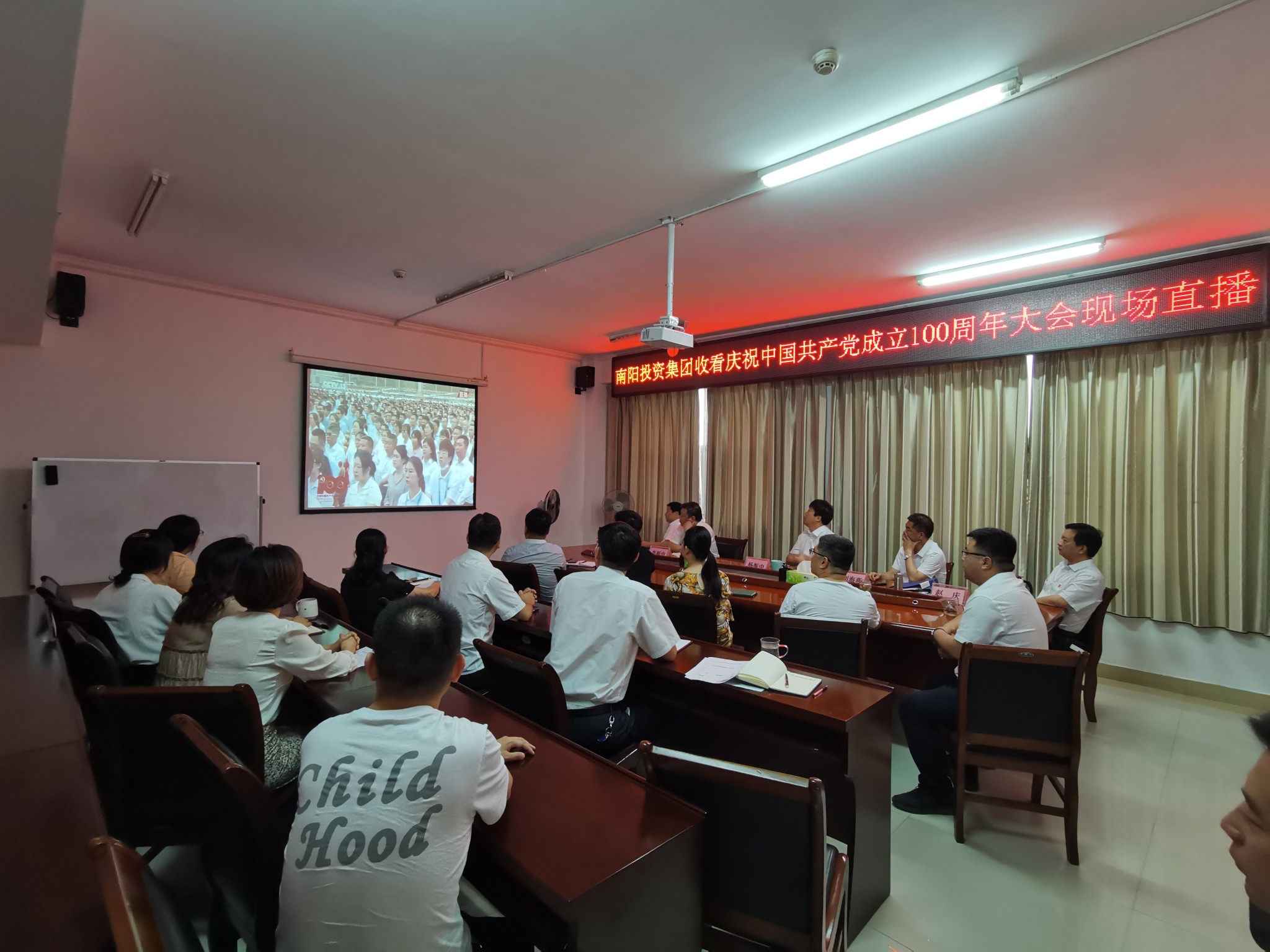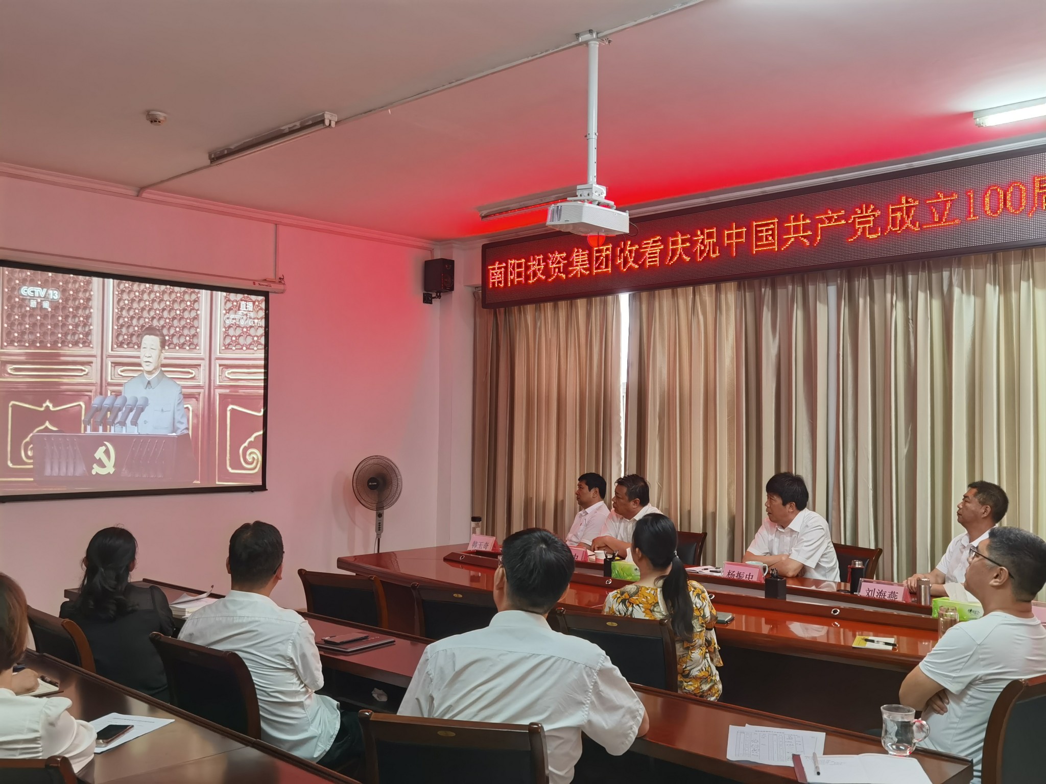 2021年7月1日上午8時,南陽投資集團(tuán)全體黨員收看慶祝中國共產(chǎn)黨成立100周年大會,認(rèn)真學(xué)習(xí)習(xí)近平總書記在慶祝大會上的重要講話精神。