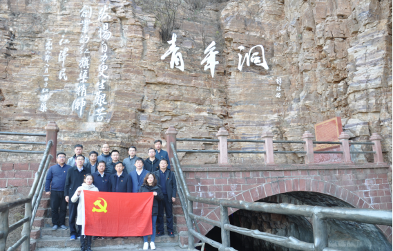 接著全體黨員同志沿著依山而建的水渠參觀了紅旗渠總干渠的咽喉工程,也是紅旗渠建設(shè)最艱巨的地段——青年洞。望著穿山而過的紅旗渠水,全體人員再次感受了修建紅旗渠時的艱辛和不易,實地見證了林州人民艱苦創(chuàng)業(yè),在懸崖峭壁之上人工開鑿天渠的偉大壯舉。