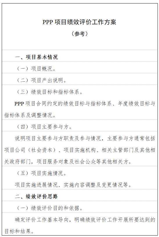 PPP項(xiàng)目績(jī)效評(píng)價(jià)工作方案(參考)