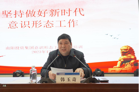 為深入學(xué)習(xí)貫徹習(xí)近平新時代中國特色社會主義思想和黨的二十大精神,全面貫徹落實(shí)習(xí)近平文化思想和習(xí)近平總書記關(guān)于意識形態(tài)工作的重要論述精神,牢牢把握鑄牢中華民族共同體意識這條主線,12月27日,南陽投資集團(tuán)舉辦意識形態(tài)專題培訓(xùn),集團(tuán)黨委副書記、監(jiān)事會主席韓玉奇作專題授課。