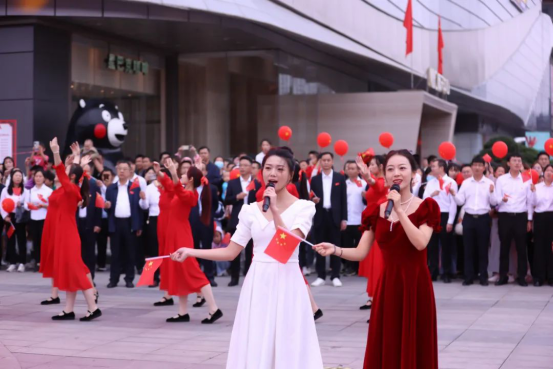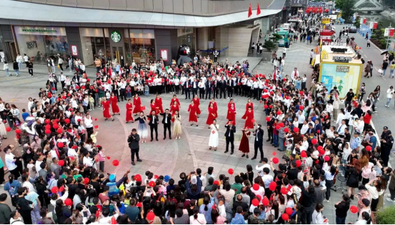10月1日,南陽(yáng)市宛城區(qū)建設(shè)路與人民路交叉口的360廣場(chǎng)摩根店,一派節(jié)日繁華。隨著歌曲《我和我的祖國(guó)》經(jīng)典旋律響起,現(xiàn)場(chǎng)的群眾手舉國(guó)旗、載歌載舞,用嘹亮的歌聲和幸福的舞蹈來(lái)表白他們對(duì)祖國(guó)的節(jié)日祝福。
