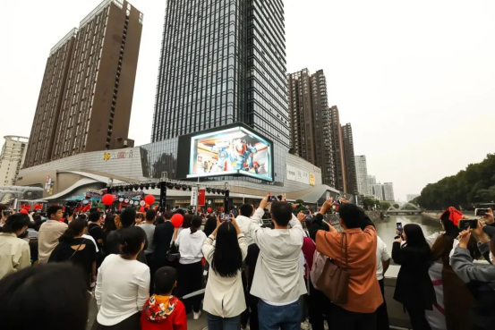 隨著“南陽(yáng)之眼”的360廣場(chǎng)裸眼3D大屏點(diǎn)亮,南陽(yáng)市委市政府的節(jié)日祝福在大屏上播出時(shí),現(xiàn)場(chǎng)群眾一片歡呼雀躍。紅色的飄帶漫天飛舞、航天員從太空送來(lái)?yè)肀А㈧趴岬某壬珯C(jī)甲將頭探出屏幕……南陽(yáng)裸眼3D屏點(diǎn)亮視覺(jué)盛宴,人們紛紛舉起手機(jī)拍照合影,留下這歡樂(lè)美好記憶。