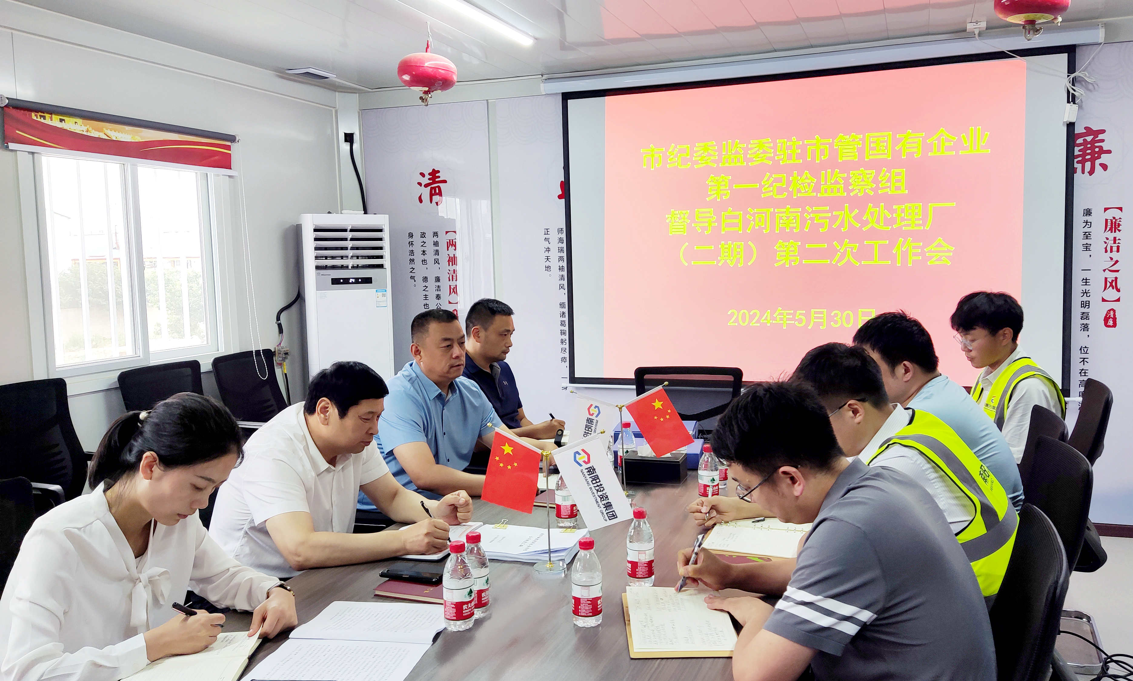 5月30日,市紀(jì)委監(jiān)委駐市管國有企業(yè)第一紀(jì)檢監(jiān)察組組長馬馳、副組長于智博一行前往白河南污水處理廠(二期)項目調(diào)研清廉工程創(chuàng)建工作,集團(tuán)黨委副書記、監(jiān)事會主席韓玉奇陪同調(diào)研。