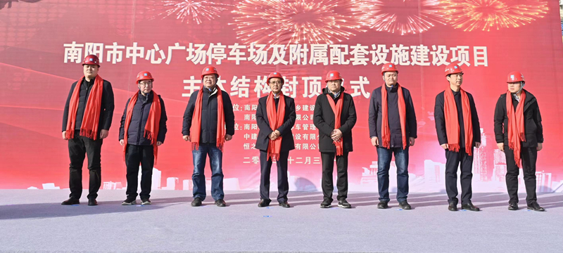 南陽投資集團黨委書記劉九利宣布南陽市中心廣場停車場及附屬配套設(shè)施建設(shè)項目主體結(jié)構(gòu)封頂儀式正式啟動。