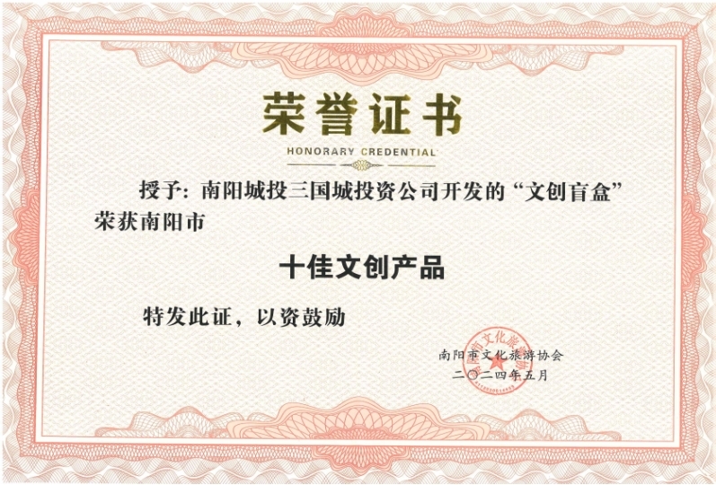 2024年南陽(yáng)市文化旅游協(xié)會(huì)第四屆四次理事會(huì)于5月30日上午隆重舉行。臥龍崗景區(qū)以卓越的服務(wù)質(zhì)量、創(chuàng)新的研發(fā)理念、文明旅游工作的示范帶動(dòng)作用,榮獲我市2023年度“十佳旅游景區(qū)”“十佳文創(chuàng)產(chǎn)品”雙榮譽(yù)稱(chēng)號(hào)。