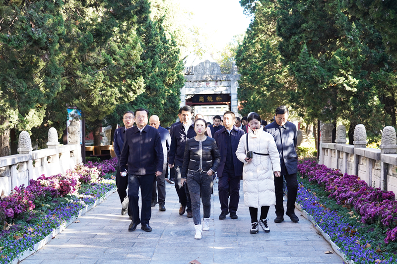 松柏掩映中,古色古香的武侯祠古韻悠長??疾旖M一行先后來到大拜殿、岳飛手書諸葛亮前后《出師表》碑廊、諸葛草廬、三顧堂等區(qū)域進行觀摩,并就歷史文化傳承保護、景區(qū)項目建設(shè)特色、運營服務(wù)理念等多個領(lǐng)域進行交流。在醫(yī)圣文化園,考察組沿著習(xí)近平總書記視察南陽的考察路線,走過“祠、墓、館”新中軸線,詳細了解了南陽中醫(yī)藥傳承創(chuàng)新發(fā)展方面的具體做法和成效以及產(chǎn)業(yè)鏈群培育、文旅融合發(fā)展等情況。