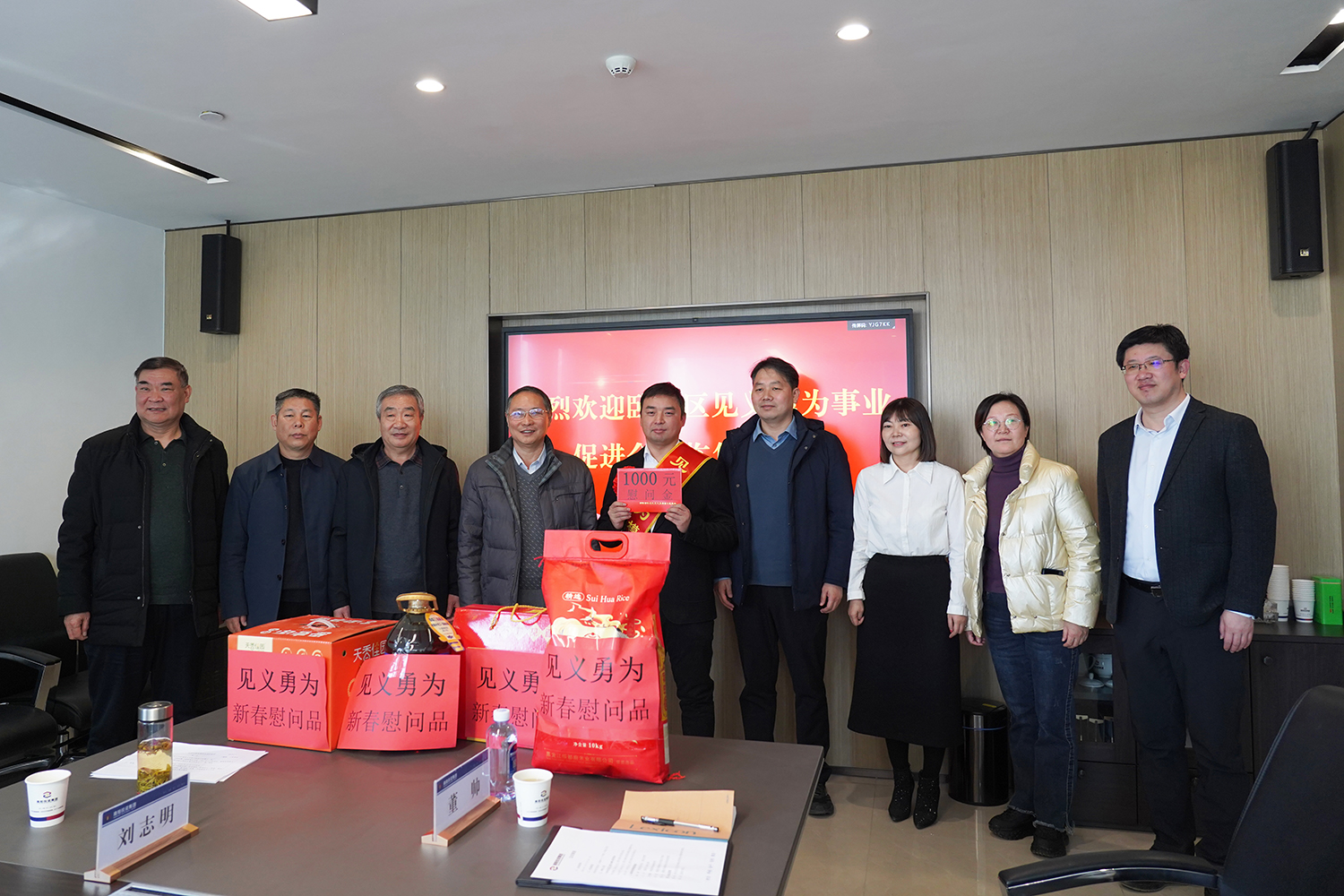 1月17日,臥龍區(qū)見義勇為事業(yè)促進(jìn)會(huì)會(huì)長(zhǎng)賀登峰一行來到南陽投資集團(tuán),看望慰問集團(tuán)見義勇為職工董帥,并送上慰問金及慰問品。集團(tuán)黨委委員、副總經(jīng)理?xiàng)顫?,辦公室、財(cái)務(wù)部、工會(huì)、國控東森集團(tuán)相關(guān)負(fù)責(zé)人參加。