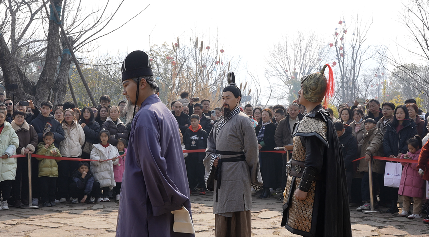 新春佳節(jié),南陽臥龍崗武侯祠景區(qū)張燈結(jié)彩、鑼鼓喧天,人潮涌動。“2025臥龍崗新春大廟會”活動吸引了眾多游客上龍崗,過大年,品美食,賞演藝。