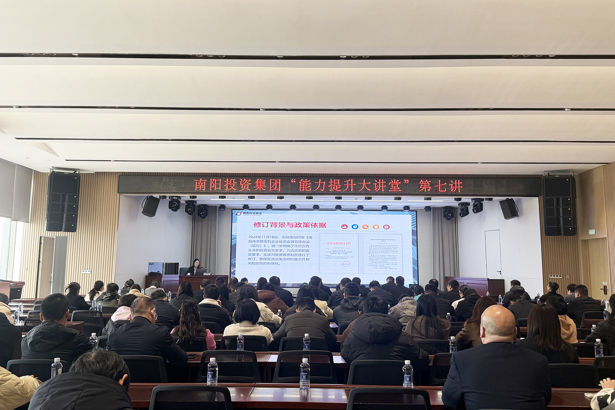 2月27日,南陽投資集團(tuán)組織開展“能力提升大講堂”第七講投資管理專題培訓(xùn),本次培訓(xùn)聚焦集團(tuán)投資管理制度體系,通過系統(tǒng)化解讀和實務(wù)指導(dǎo),著力提升投資決策規(guī)范化和風(fēng)險防控水平。集團(tuán)中層干部、子公司負(fù)責(zé)人及相關(guān)業(yè)務(wù)骨干共計80余人參加。